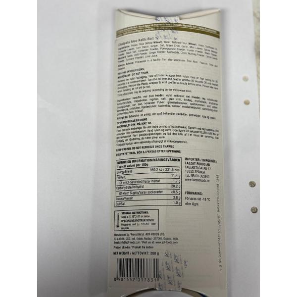 Indulge in the tantalizing flavors of Ashoka Frozen Kathi Roll Chatpata Aloo! This convenient frozen delight features a zesty filling of spicy potatoes, infused with a medley of tangy and aromatic spices. Each pack contains 200g of this flavorful filling, wrapped in a soft and flaky paratha bread. Simply heat and savor the mouthwatering combination of flavors and textures.