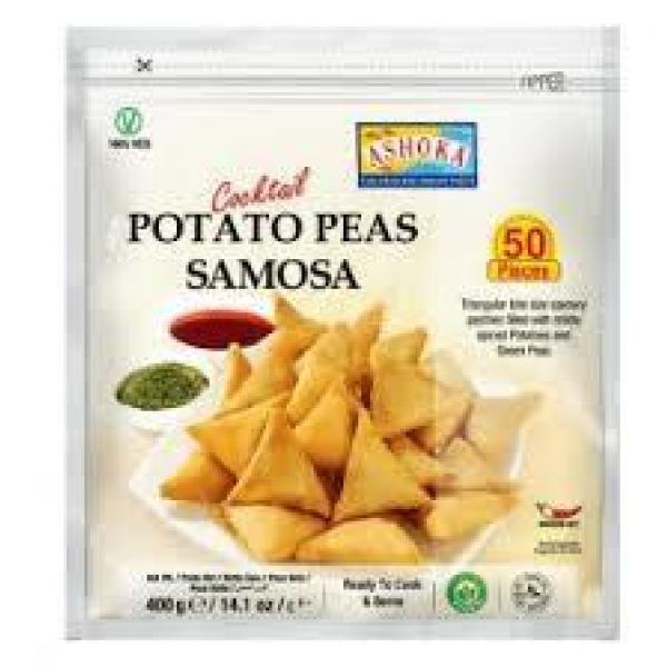 vetemjölsdeg fylld med en kryddad blandning av potatis, gröna ärtor, lök, ingefära, vitlök och grön chili, kryddad med en blandning av aromatiska kryddor som spiskummin, koriander och gurkmeja.