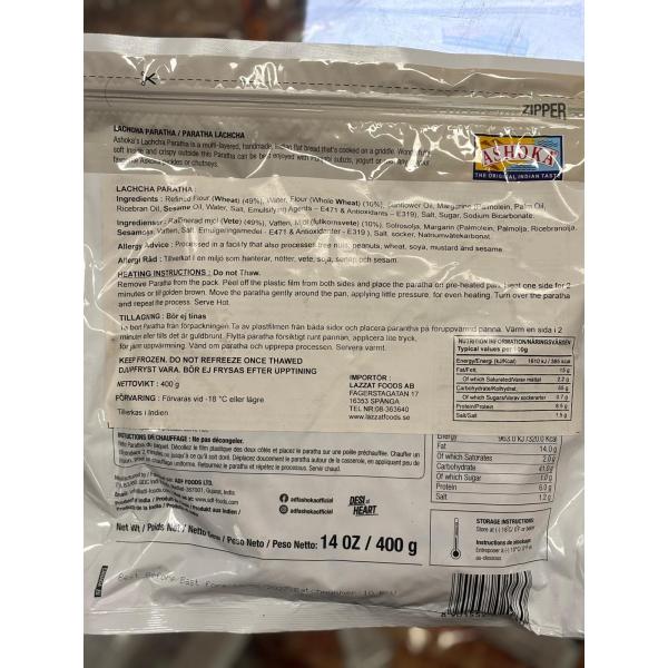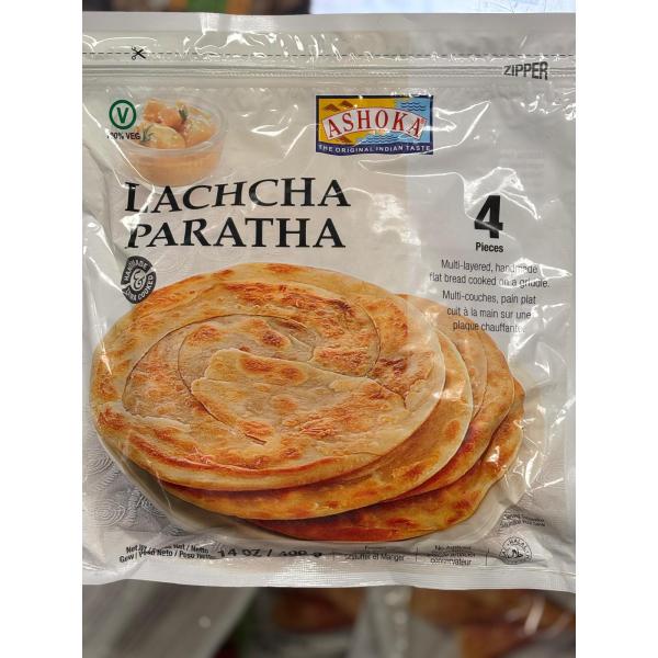 Frozen Ashoka Lachcha Paratha (4 pieces) are multilayered, handmade Indian flat bread cooked on a griddle. Frozen Ashoka Lachcha Paratha packet contains four pieces and is perfect for a family meal to serve with curries, sabzis or side dishes like pickles or curd.