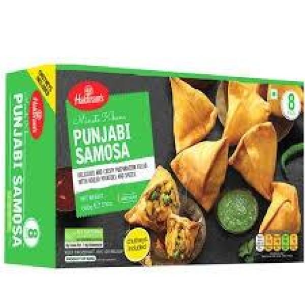 Potatis, gröna ärtor, grön chili och korianderblad, vetemjöl (Maida) och vatten, raffinerad solrosolja och interesterifierat vegetabiliskt fett (vanligtvis en blandning av palmolja och sesamolja), salt, koriander, spiskummin, röd chilipulver, mangopulver (Amchur), svartpeppar, gurkmeja, ajwain (caromfrön) och ibland ingefära eller asafoetida.