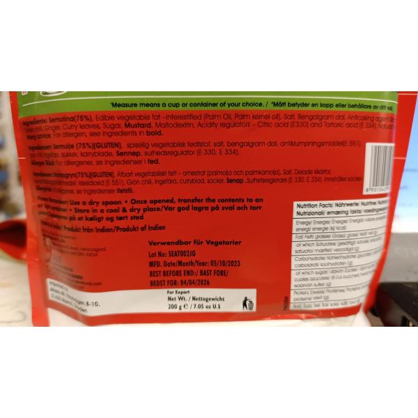 • Fragrant and delicious ingredients like Wheat Semolina, Bengal gram splits and spices.