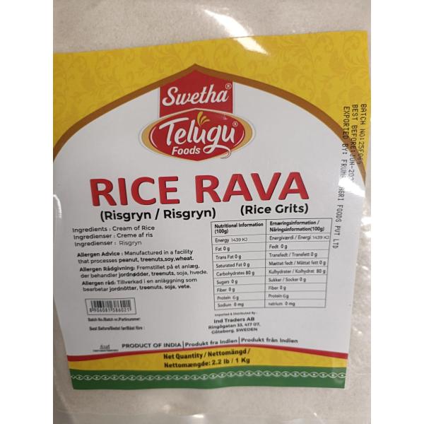 Telugu Foods Rice Rava är en grovmalen risprodukt som vanligtvis används i sydindisk matlagning till rätter som idli, upma och riskakor. Den har en grynig konsistens och är snabbkokt, vilket gör den idealisk för traditionella recept som kräver en hälsosam och lättsmält bas.